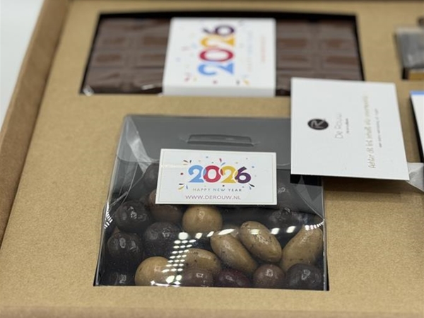 Inhoud: Exclusieve bonbons (klein van formaat en groots van smaak), een rijk gevuld doosje chocolaatjes met mooie strik, chocoladedrageerde noten, 1 verpakking Florentines en een verfijnde chocoladereep.